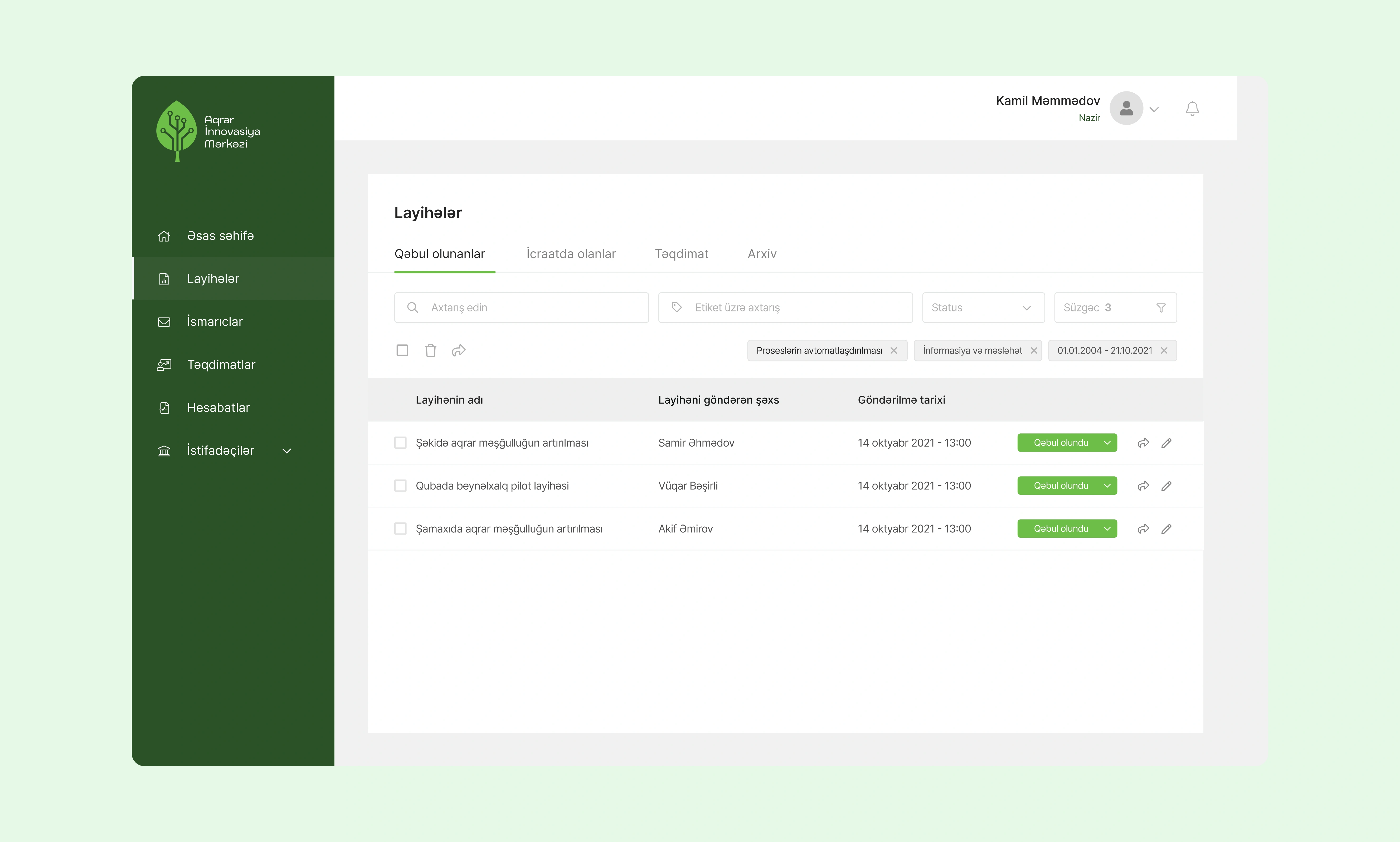 Rəhbərlik üçün hazırlanmış göstəricilər layihələrin ümumi vəziyyətini daha qısa zamanda analiz etməyə imkan verdi. Müxtəlif istifadəçi rolları üçün fərqli baxışların tətbiqi informasiya yüklənməsini azaltdı. Bu, istifadəçilərin diqqətini əsas əməliyyatlara yönəltdi.