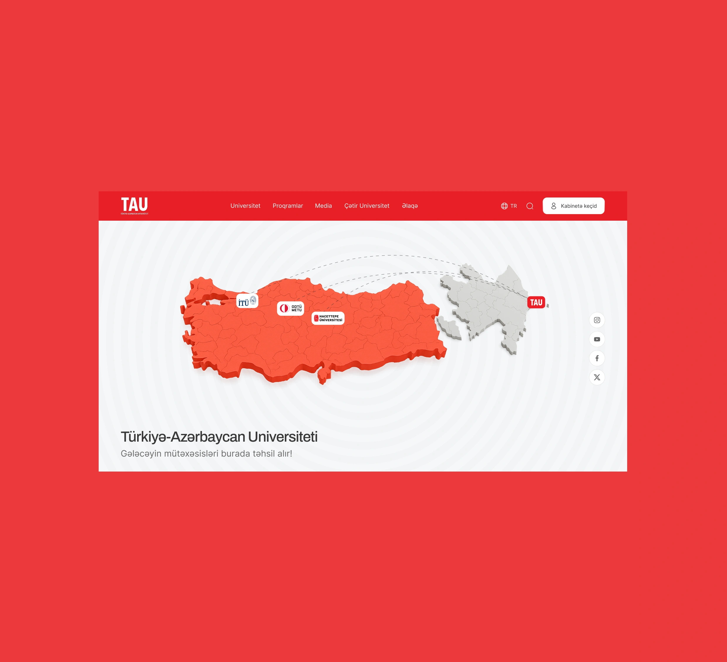 Türkiyə-Azərbaycan Universiteti üçün yaradılan veb sayt ali təhsildəki strateji mövqeyi və akademik dəyəri aydın şəkildə əks etdirən etibarlı rəqəmsal platformaya çevrildi. Platforma universitetin fəaliyyətini, nailiyyətlərini və dinamik tələbə həyatını effektiv şəkildə təqdim edərək TAU-nun müasir və beynəlxalq imicini gücləndirdi.