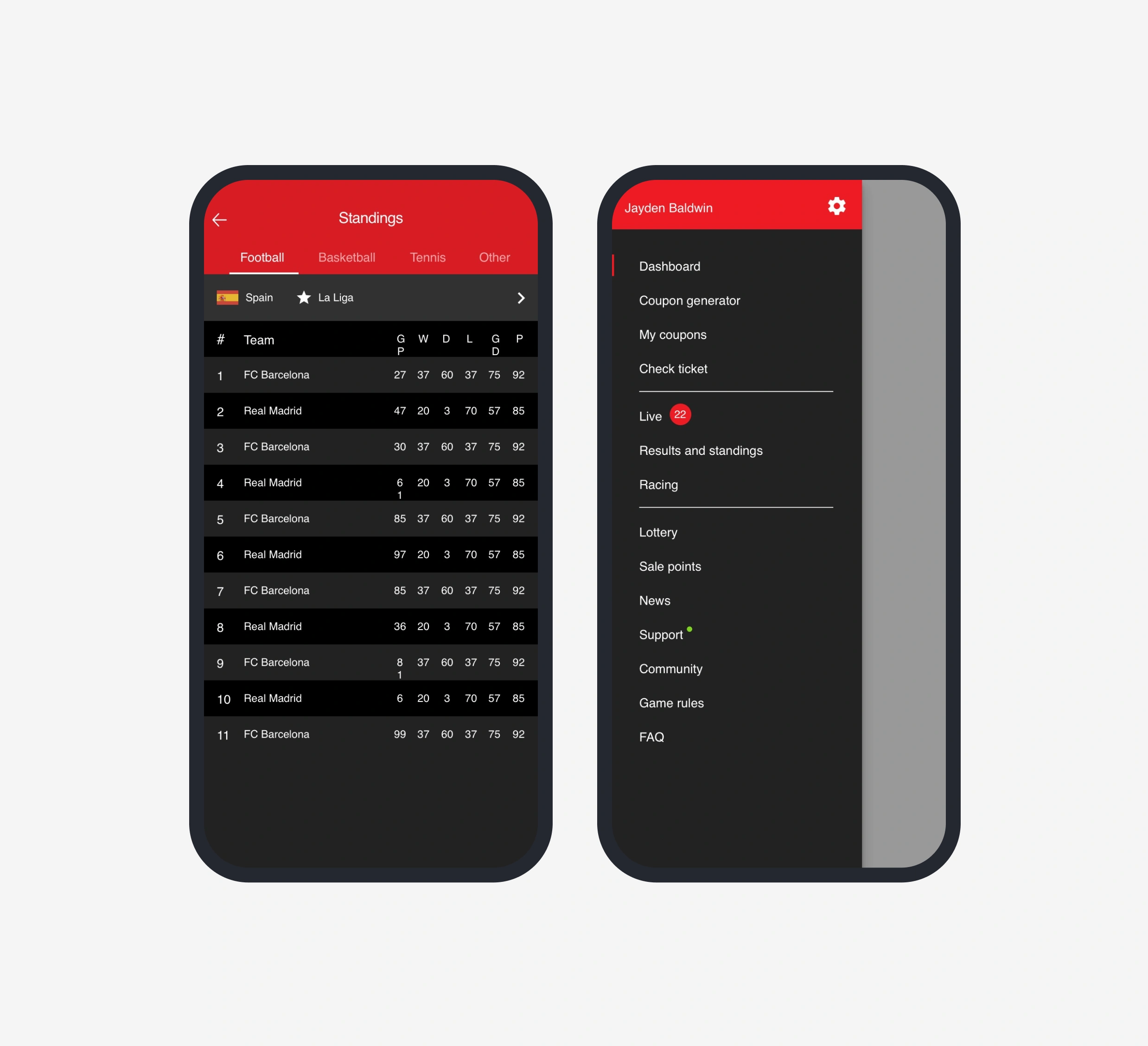 Müasir və dinamik dizayna malik mobil tətbiq hazırladıq. İnterfeysi sürətli mərc prosesi üçün optimallaşdırdıq, live əmsallara ani çıxış və rahat naviqasiya təmin etdik, həm iOS, həm də Android platformalarında stabil performans qurduq.