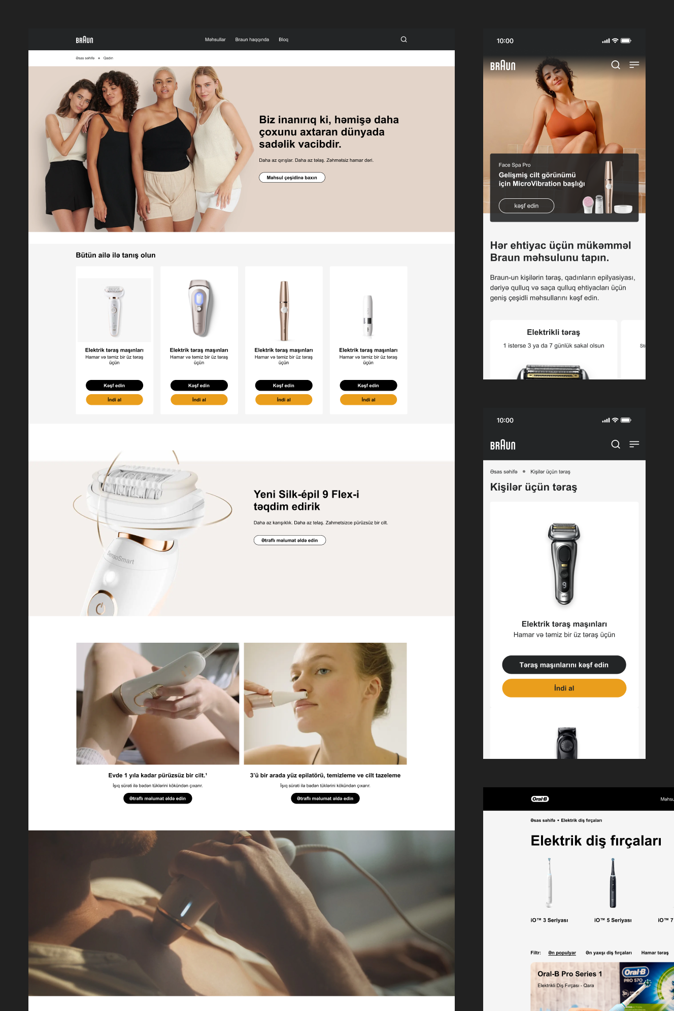 Braun, 1921-ci ildə Almaniyada qurulmuş və şəxsi baxım texnologiyaları sahəsində keyfiyyət, etibarlılıq və innovasiya ilə tanınan bir markadır. Şirkət tıraş maşınları, epilyatorlar, IPL cihazları və digər şəxsi baxım məhsulları ilə evdə professional baxım təcrübəsi təqdim edir.