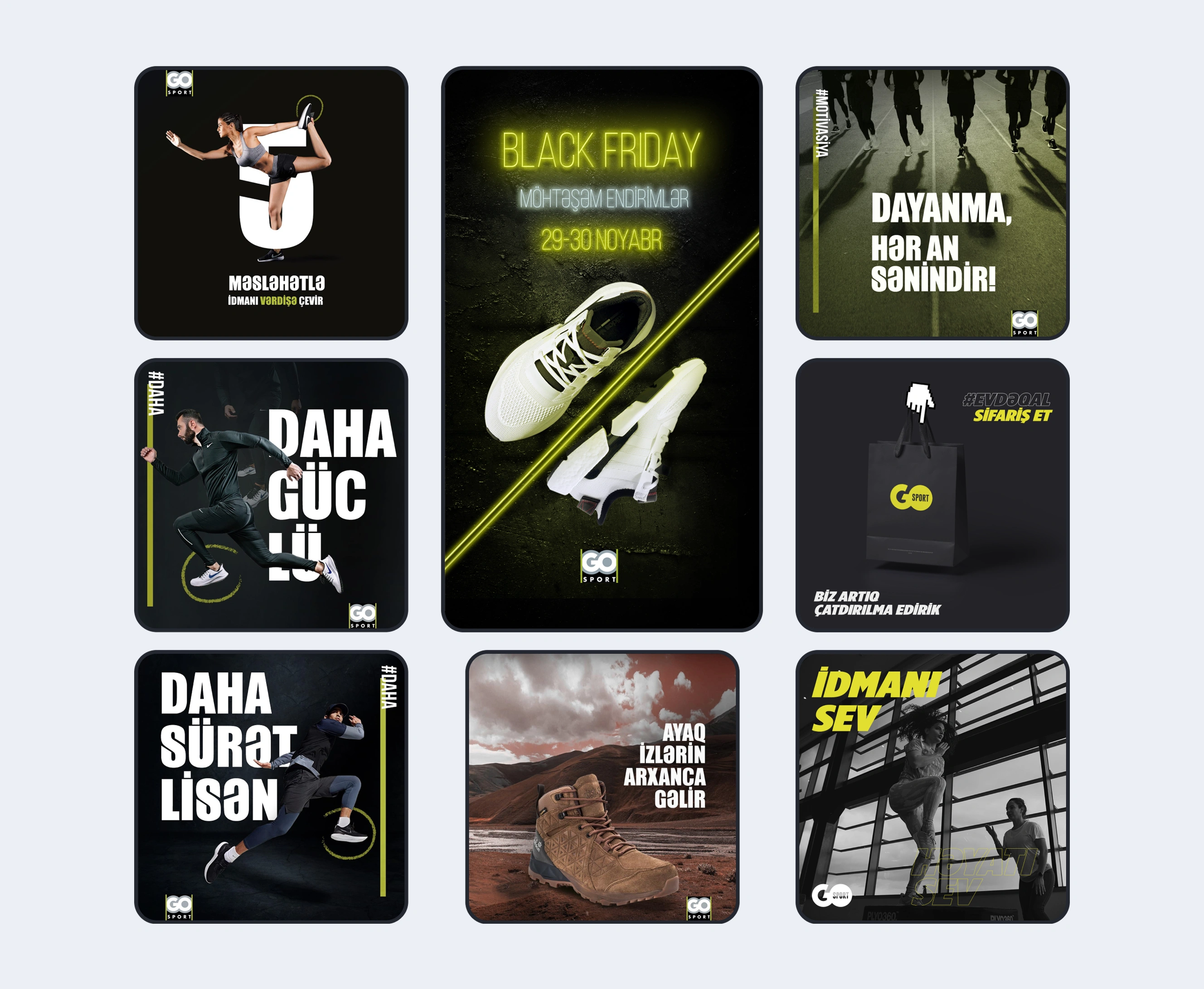 GoSport üçün rəqəmsal kommunikasiya yalnız marka imici deyil, eyni zamanda onlayn mağaza təcrübəsi kimi quruldu. Müştərilərin fiziki vitrində gözlədiyi yenilənmə prinsipini rəqəmsal məkana da daşıyaraq, kontent vitrinini mütəmadi yenilədik və markanın dəyişən kampaniya ehtiyaclarına çevik şəkildə uyğunlaşdıq.